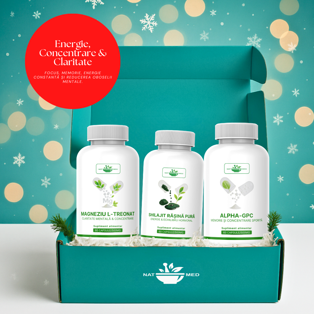 Energie, Concentrare & Claritate este pachetul perfect pentru cei care vor să-și mențină performanța și vitalitatea — un cadou inspirat pentru profesioniști, studenți sau persoane foarte active.